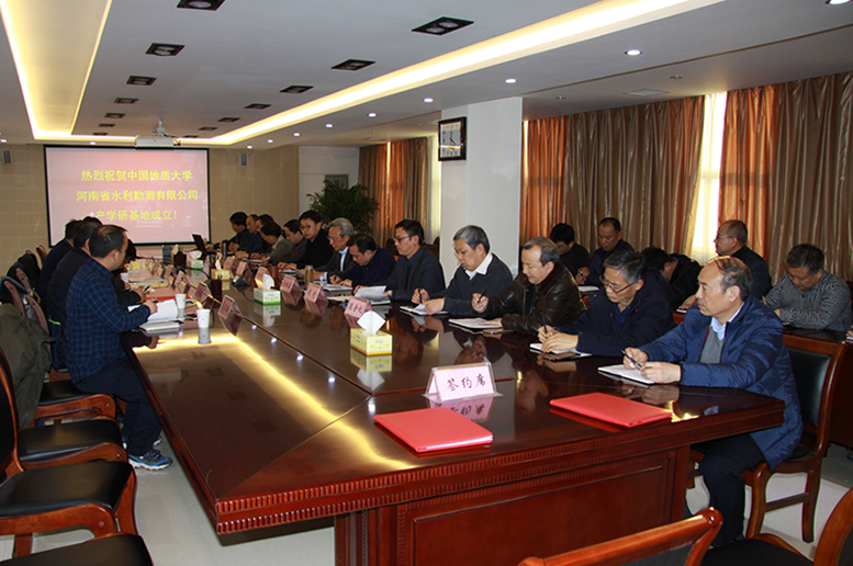 2018年1月5日下午,公司与中国地质大学(武汉)联合共建产学研基地签约仪式在十二楼会议室举行。副总经理来光主持会议,河南省水利厅科技教育处处长陈德新致辞,董事长赵健仓代表公司致欢迎辞,向出席仪式的各位来宾表示热烈的欢迎,希望与中国地质大学深入交流合作,谋求更大支持,优势互补,创造双赢。